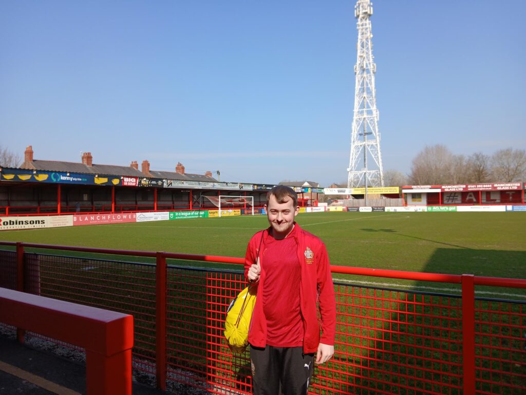 Ronan then moved on to a placement at Altrincham FC, where he now supports community sports sessions for children and vulnerable adults. He has taken a lead role in warm-ups, given feedback to young participants, and demonstrated exceptional leadership.